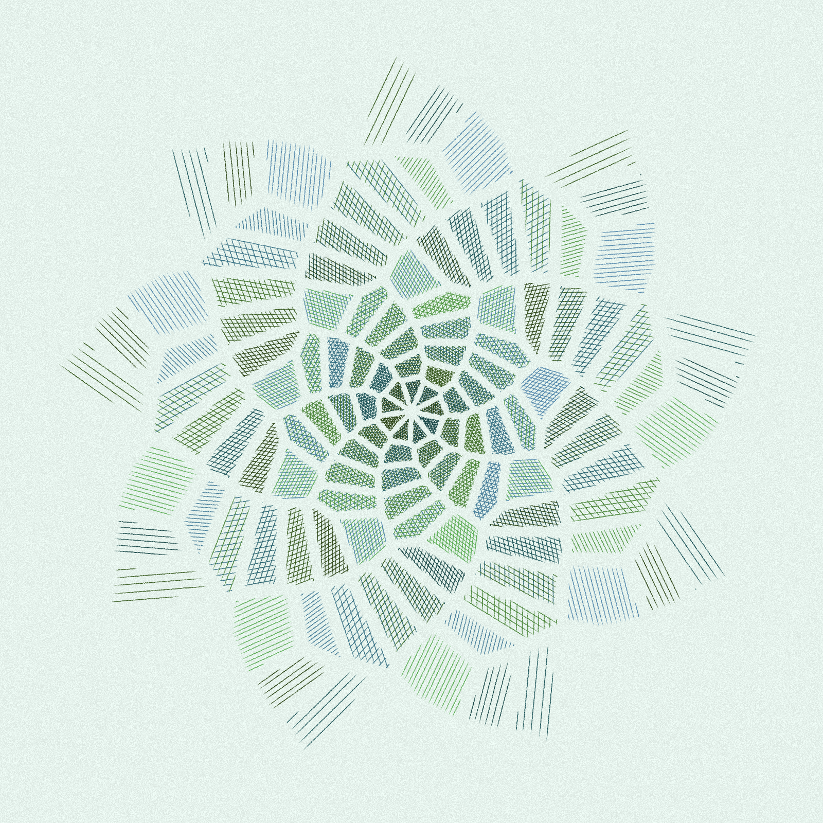 All pieces in Hatchet are composed to emulate the aesthetic of colored pencils on paper. Each piece is capable of exporting its hatch lines as a well-labeled SVG document. This will allow collectors interested in plotting to create physical renditions of their iteration.