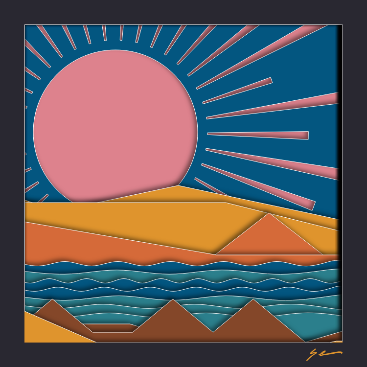 Vistas is an exploration in using layers to build an abstracted geometric landscape using a generative algorithm. But in a way that not only creates a digital image but also allows for the creation of an IRL physical artwork made from the 18 layers of laser cut wood.
