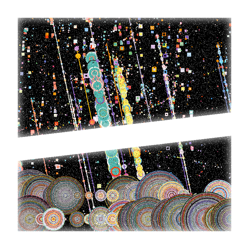 Witness hundreds of small geometric objects gather under one roof to create a cosmic rain!