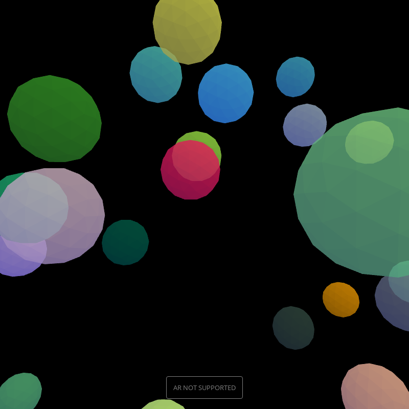 This is an experimental Generative Art. Randomly distributed colored translucent bubbles in AR space.