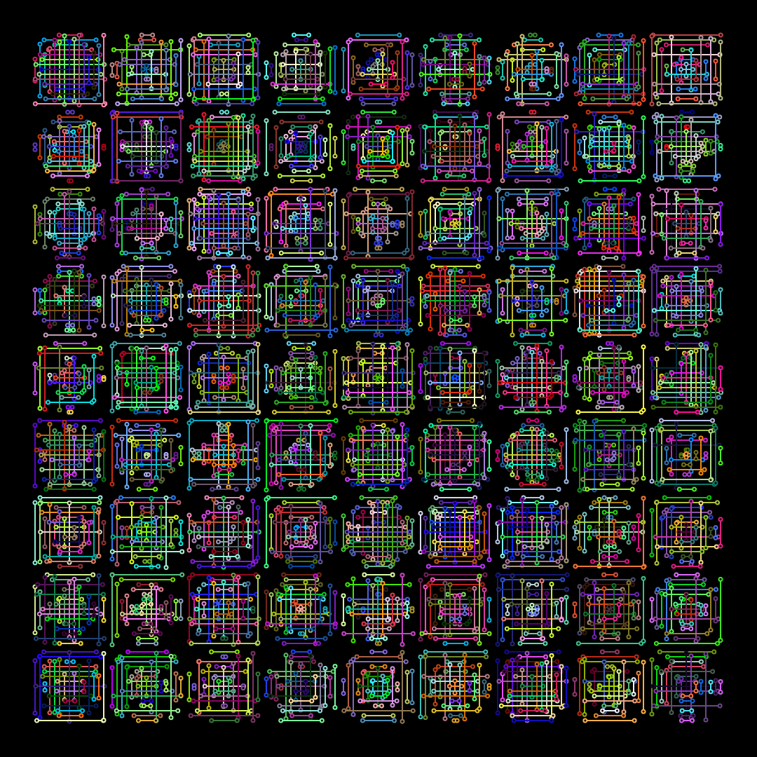 Mind Boxes attempt to create complex shapes with simple color lines so that the viewer's mind is engaged. We have accomplished our mission if you spent a few more seconds on each token and had your impressions.