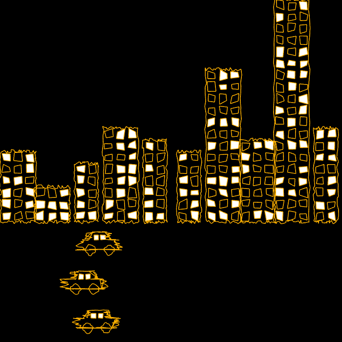 An audiovisual work from Jinyao Lin. It generates distorted harmonic with algorithm. Sound is generated with visual as well. It presents diversity in a distorion city. You could play all series together to build your own city.