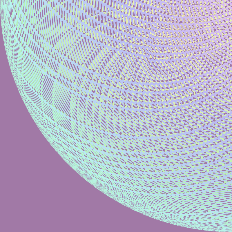 COILING 2 is an experiment in weaving color to create an orbiting sphere. Each sphere grows from a randomized initial condition. The coiling then continues to expand from 256 different rules of growth, building up each sphere ring by ring. The weaving employs a cellular automata (CA) system to generate a sphere defined by a distribution of colored cells.