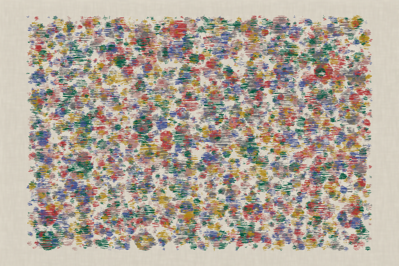 This work evolved from a simple grid. While it started as a very ordered grid, I pushed as hard as possible to make it messy and randomly beautiful. After applying a lot of mess, it becomes very busy and the order was gone. When the mess was all over the place, I started to reduce it, step by step, to bring the harmony back.