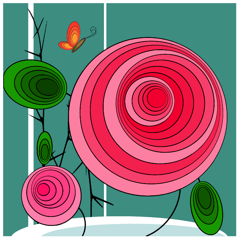 The Butterfly and roses are placed on other layers such as background, window, pot, and thorns.
