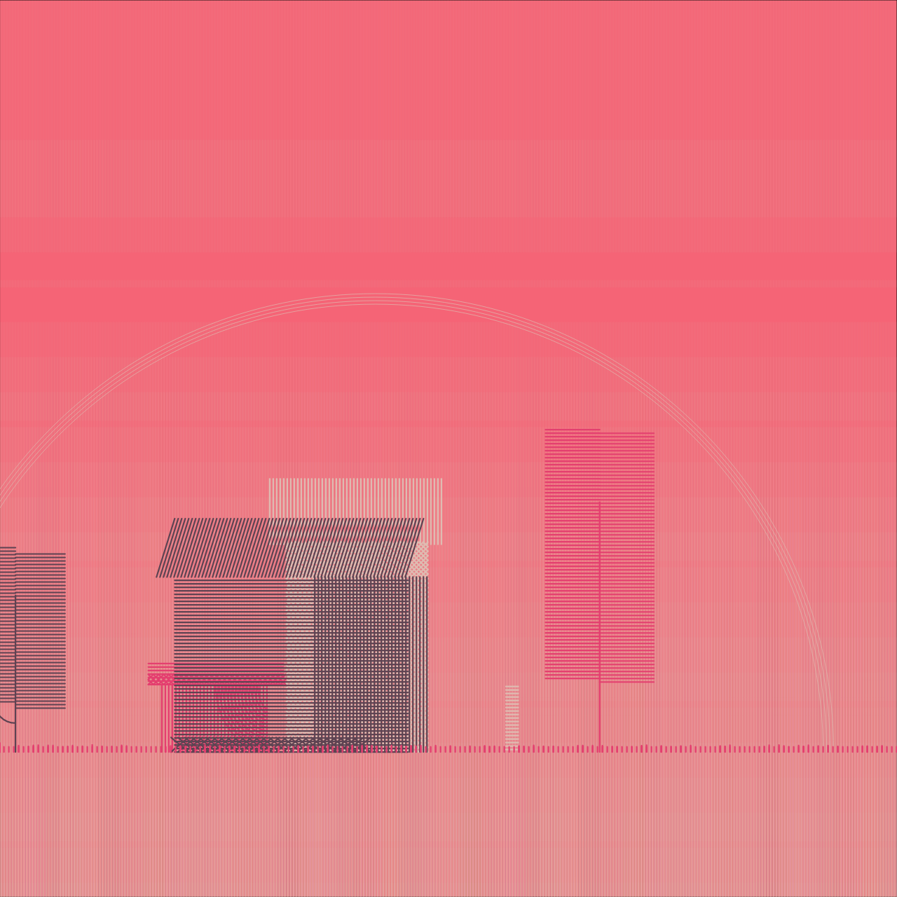 Fascinated by moire effect,I tried to make some landscape with only using lines. The color of each building is random, and sometimes the colors are same with each other ( with the background too), and made the image more quiet.