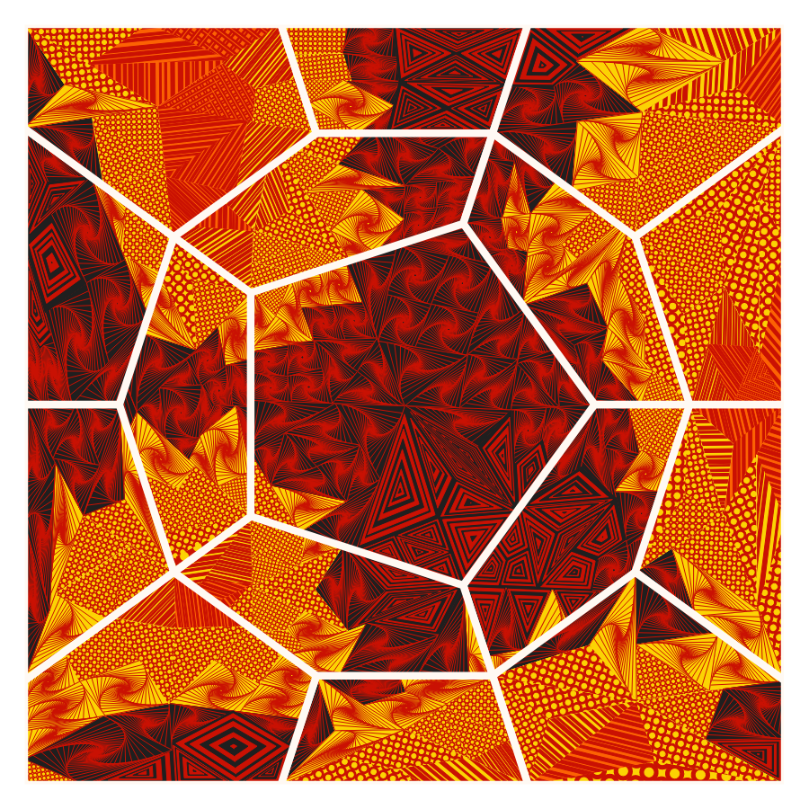 In this project, I try to remember and describe my experience about beautiful stones and gems with abstract arts. Four types of layouts are designed and each with a recursive algorithm to construct the crystal structures. Five textures are picked to mimic the complex patterns inside of crystal cells. All above them are combining in a random way, but are balanced with local structures.