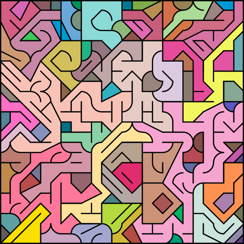 This work is composed of a combination of grids with line patterns, like my previous work "Infinite Animation" (Project #15745). However, whereas the previous work was characterized by simplicity and regularity, this one is much more chaotic.