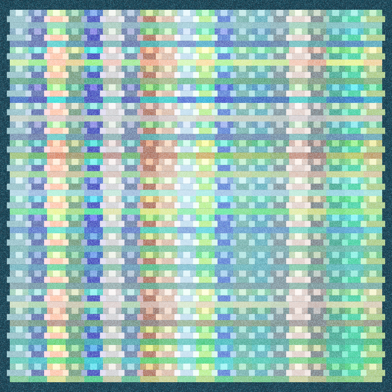 Inspired by traditional weaving and tapestry making techniques. This piece uses randomness and noise, to manipulate simple shapes. The process of layering rectangles, with varying size and color, gave the impression of woven textiles.