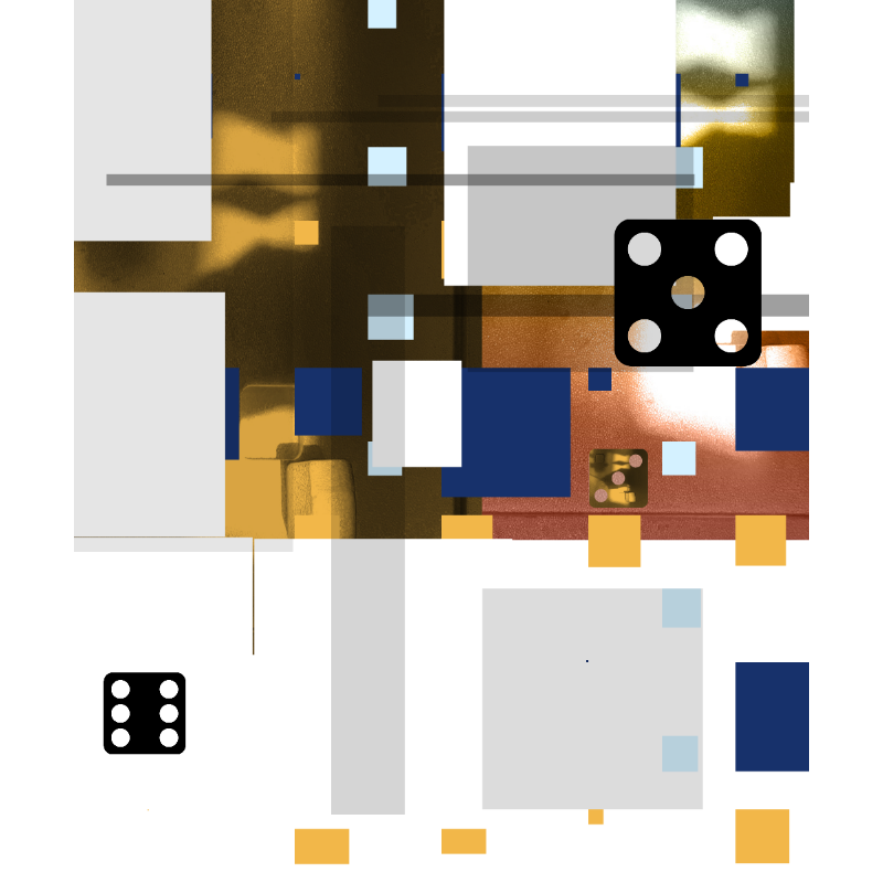All the graphic elements, colours and random arrangements were created using P5.js. The photos of polystyrene and the dices are integrated.