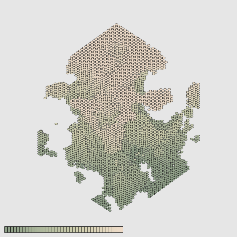 A 3D map of an imaginary cavern is created with Perlin noise; this is sliced in to an arbitrary stack, and each slice is rendered as a dot field. This is, in turn, displayed on the screen as a rotating isometric cube. Along the bottom, one can see the total number of slices, and the gradient created by the two colors used.