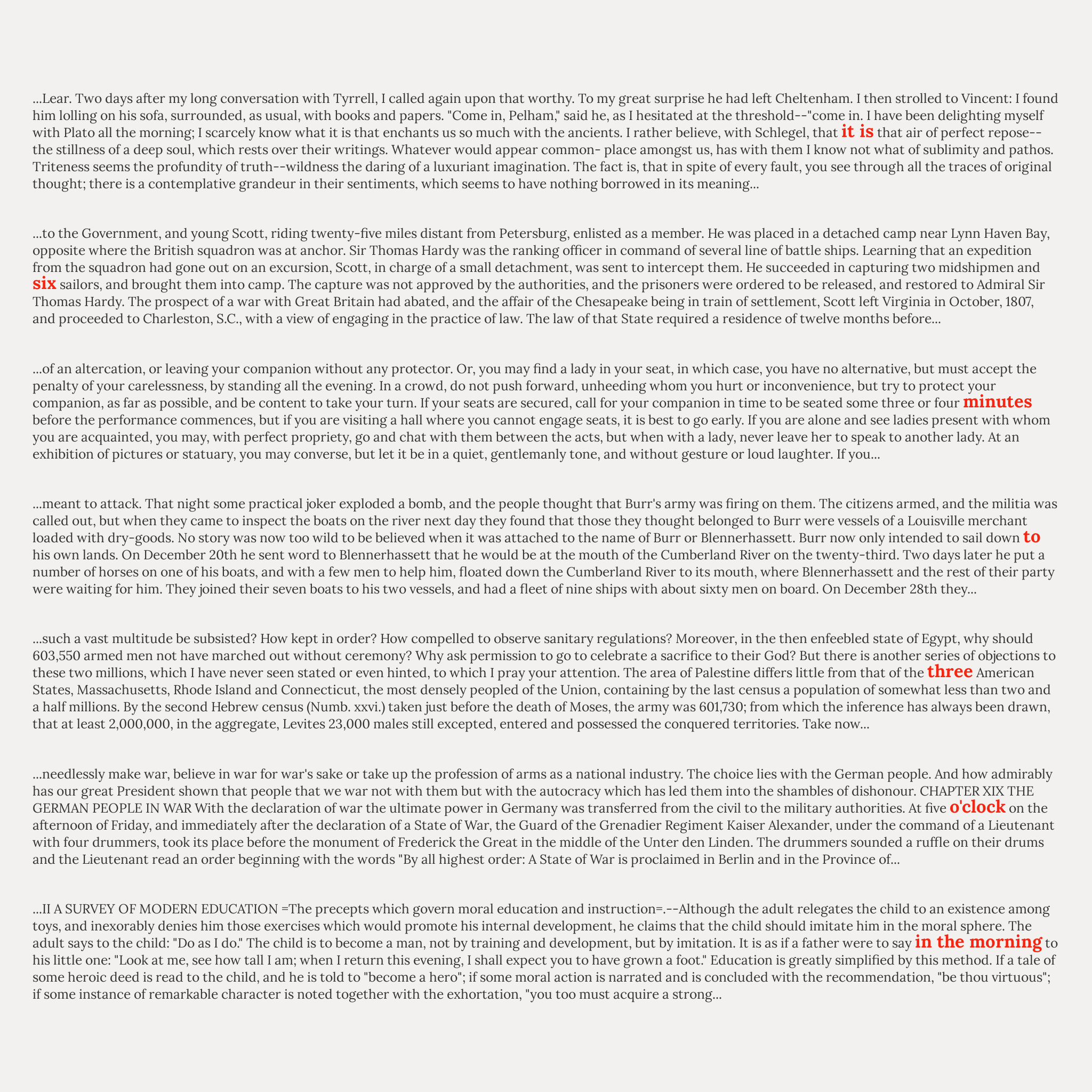 The text in this case is not generated, but rather (legally) snipped from public domain e-books on Project Gutenberg (https://gutenberg.org/), and recontextualized as a real-time clock.