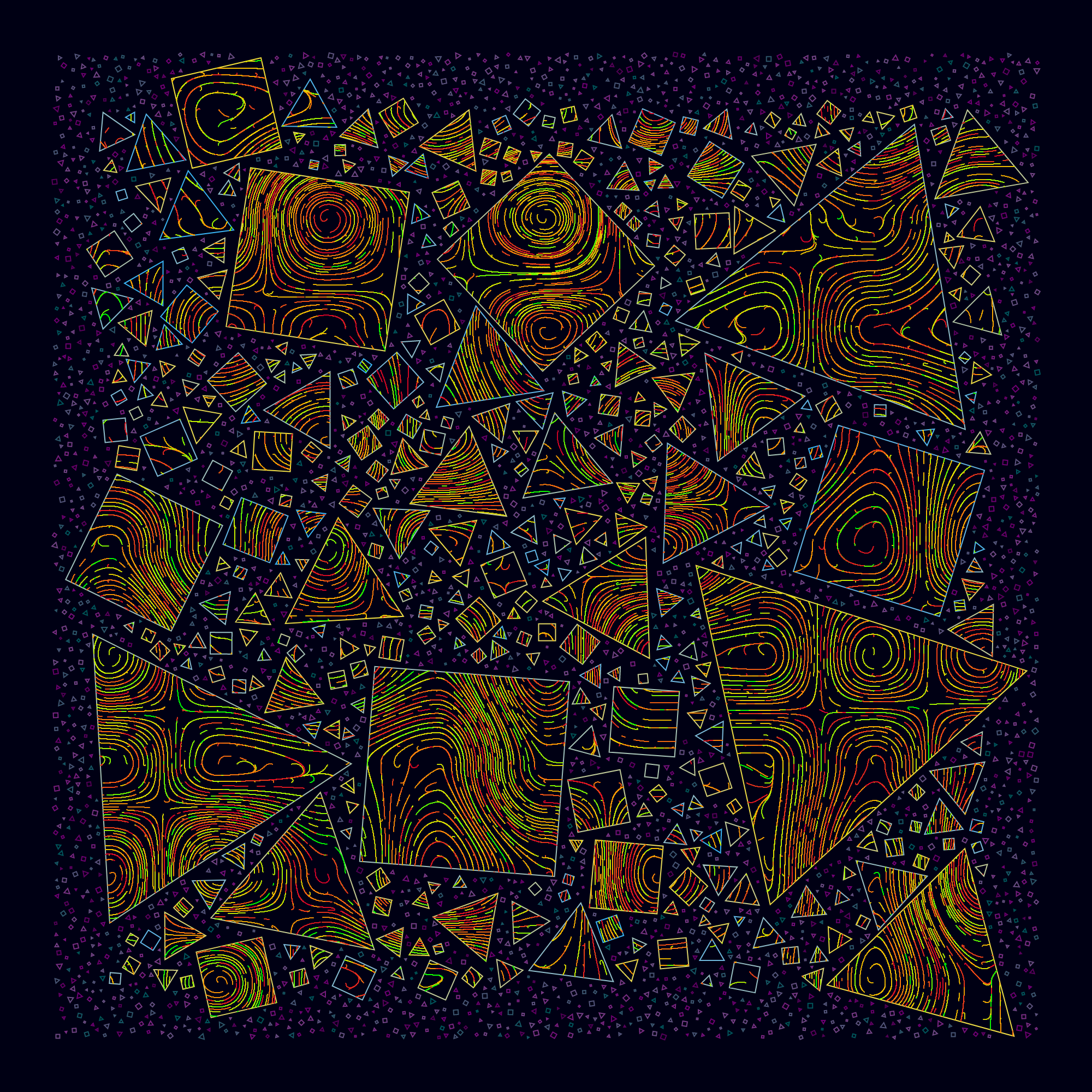 An exploration of the beauty found inside the humble polygon. Packing, stacking and just brute-forcing those little buggers wherever there's space.