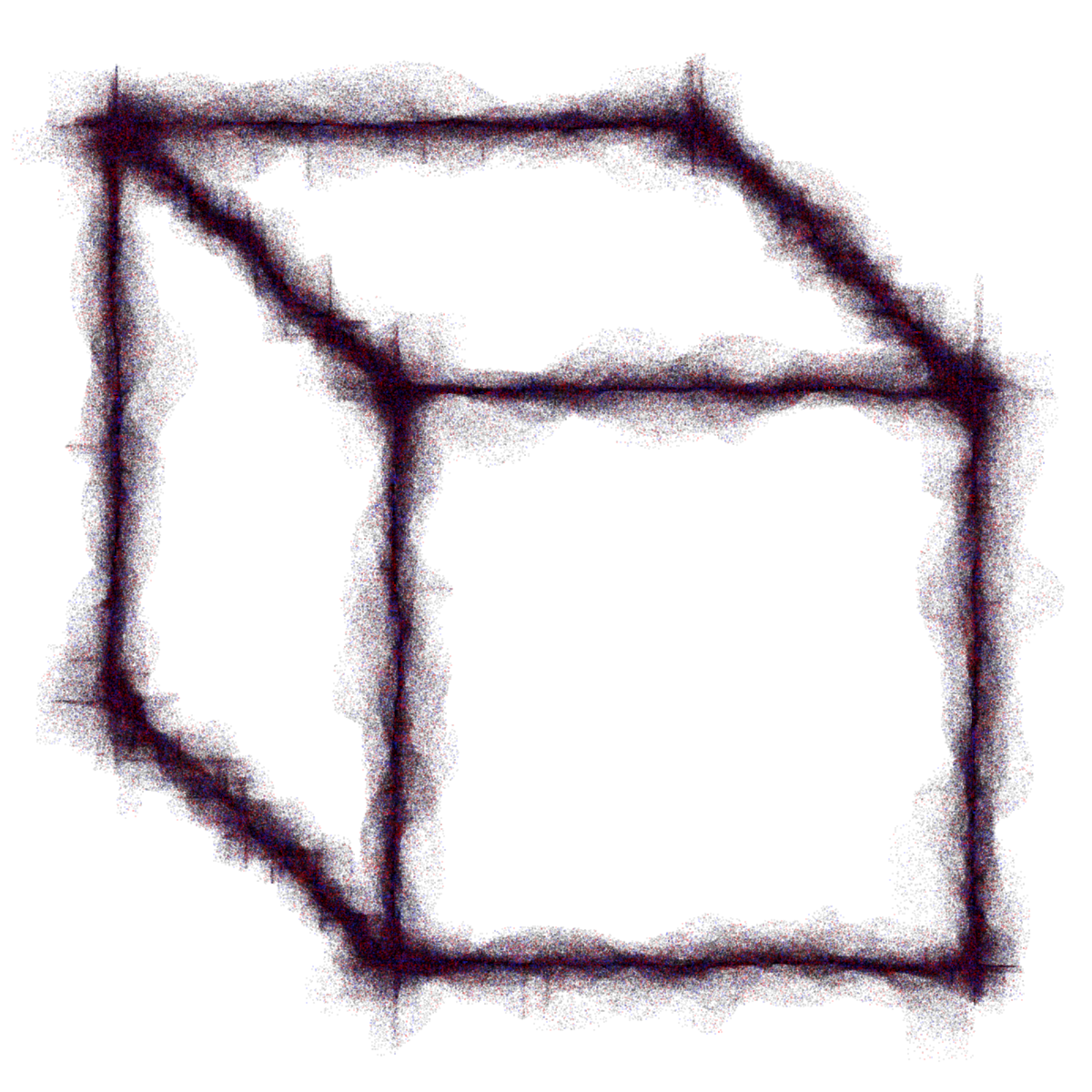 An experiment in line texture by Nate Donato, this collection features a wide variety of possible lines composed of a sand-like particle texture. Bounds around line generation properties were set loosely, resulting in many possible unique line characters with varied weights, wobbles, and more. Lines are generated in individual layered segments one by one, resulting in a pleasing animation of gradual composition as they compose one of twelve possible shapes, in one of eight possible color schemes.