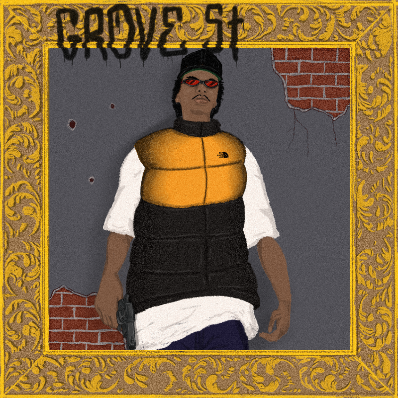 PFP project made in digital drawing inspired by the character Ryder from the game GTA San Andreas. Token made with layers, drawn digitally, randomized using the Pure Spider template.