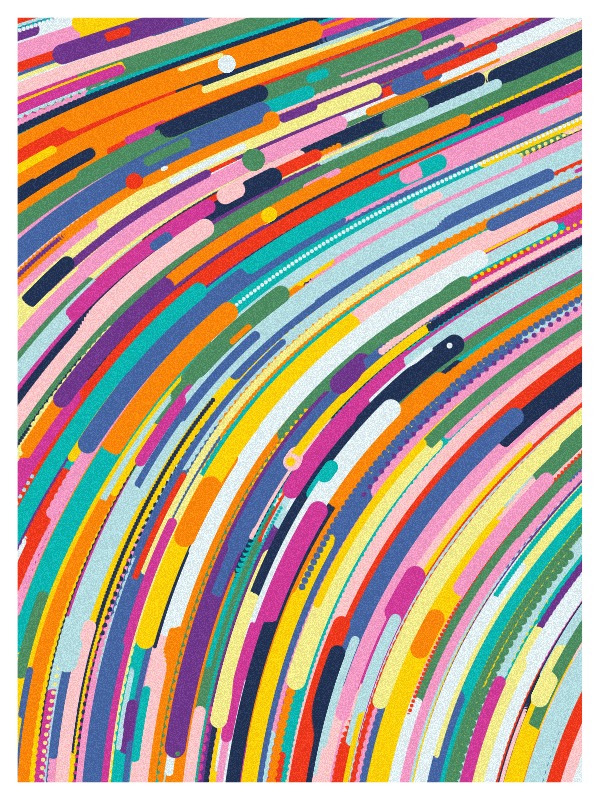 All the agents walks around 100 to 230 steps. All speed, smoothness, waviness, turbulence, size, direction, color are randomly generated.