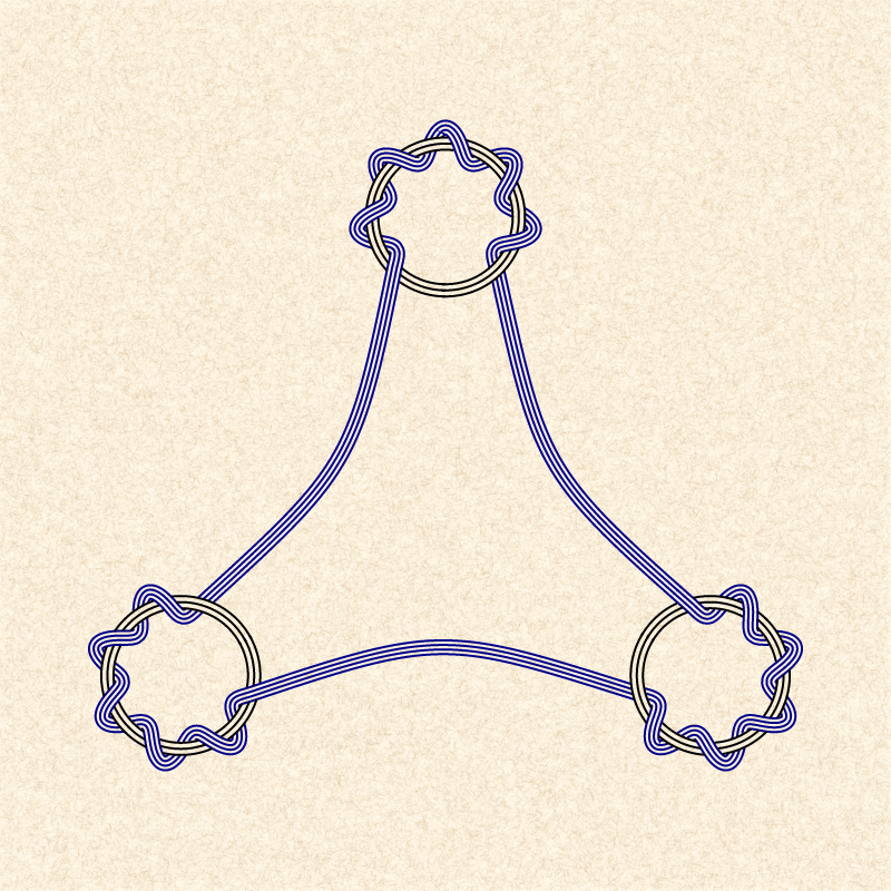 Sinusoidal weaving around circle arcs.