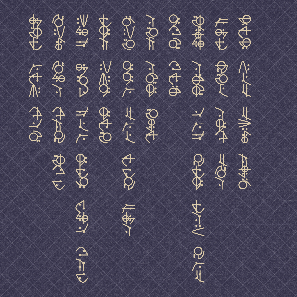 According to the rules of this imaginary language, each morpheme consists of exactly three letters and the combination of all three letters together (48*48*48) creates 110,592 unique morphemes. The purpose of creating this collection is to challenge our understanding of the usual structures of human writing systems.