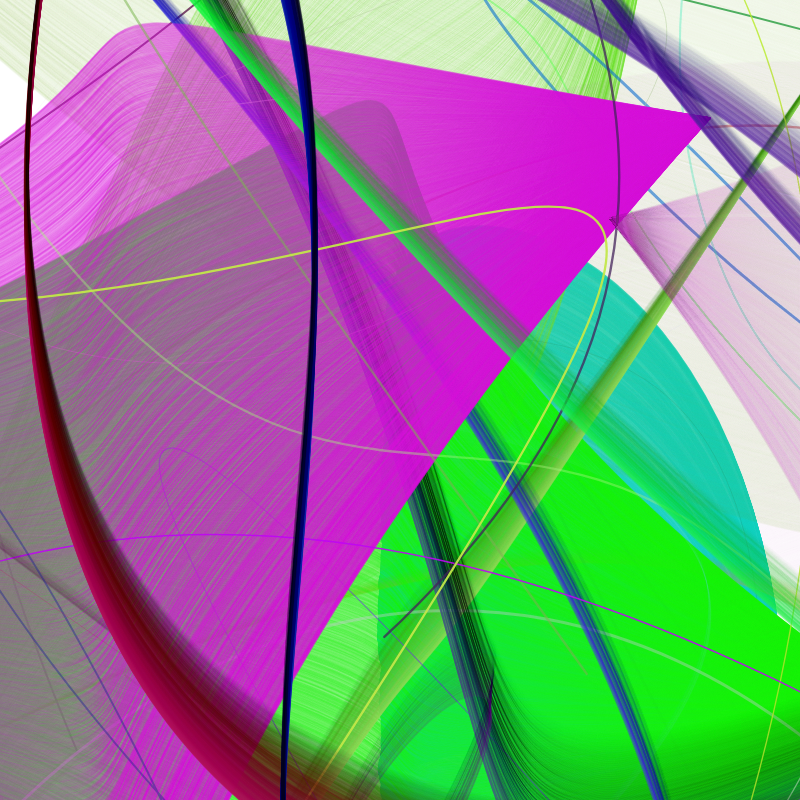 Exploring space and depth by rendering curve repetitions. This state is created by giving ample leeway to the parametric variables, so that they can flit in and out of the frame.