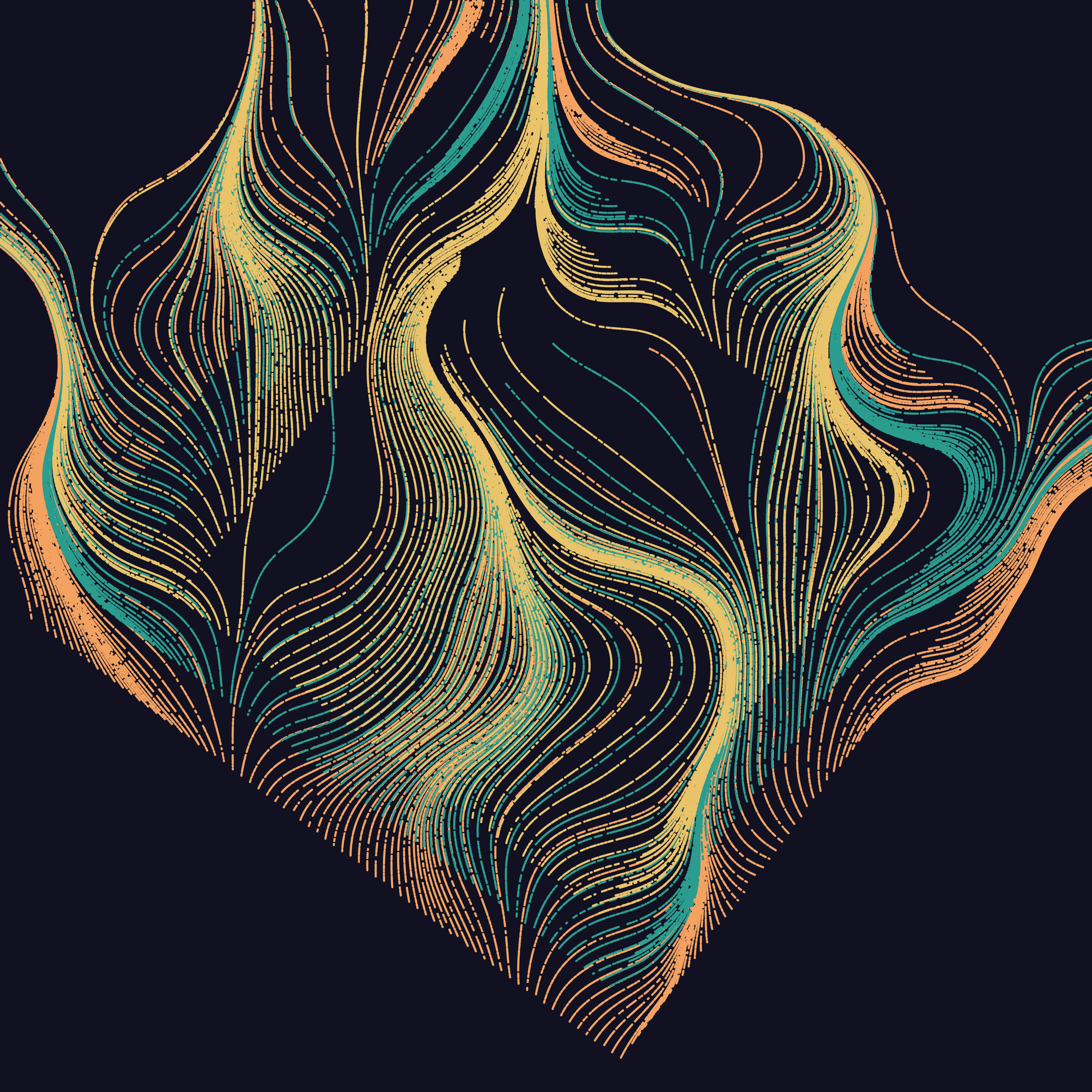 Each wisp is generated from one of six (6) geometric foundations. It is painted using one of six (6) colour palettes on one of two (2) different grounds and prefers to paint layer-by-layer but occasionally takes a different approach! Varying amounts of decay highlight the fragile, organic quality of each wisp.