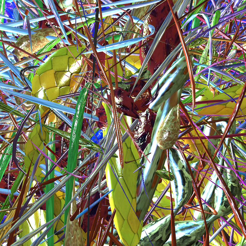 'Prismatic Thickets' is a pure generative painting algorithm; it's not animated nor interactive, but does goes further than any related painting program I've written prior. I created a very large and affordable edition with the hope that collectors can freely explore the emergent potential of the algorithm.