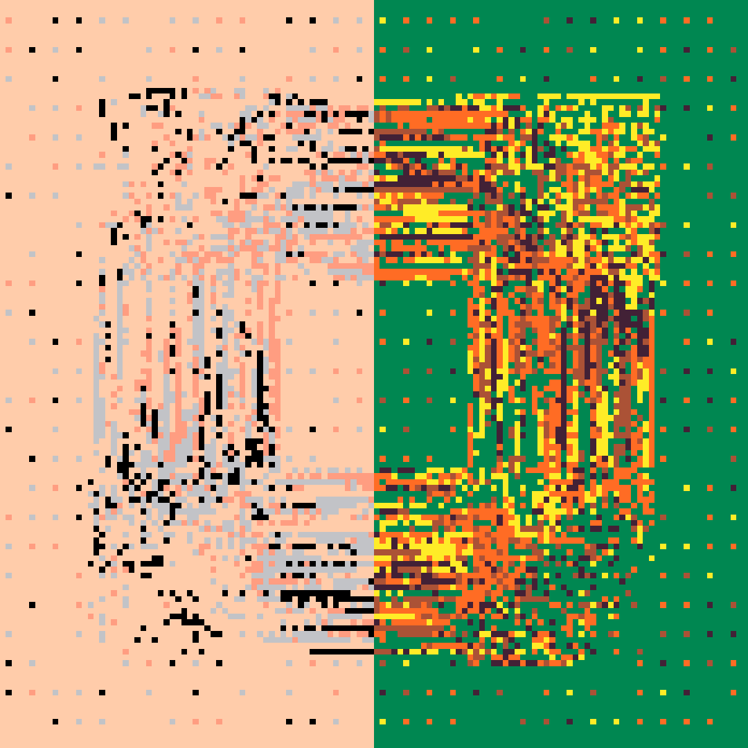 If viewing the piece in its own browser window, press ctrl+9 to save a 16 second gif (of the last 16 seconds of the simulation), press ctrl+6 to save a png.