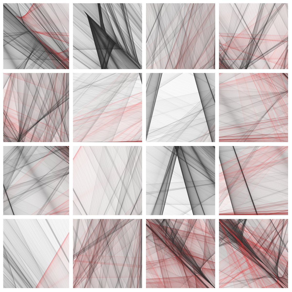A heterogeneous and harmonious tension that sporadically creates a sense of transformation and conflict. Various Color Palettes and dimensions have been used.
