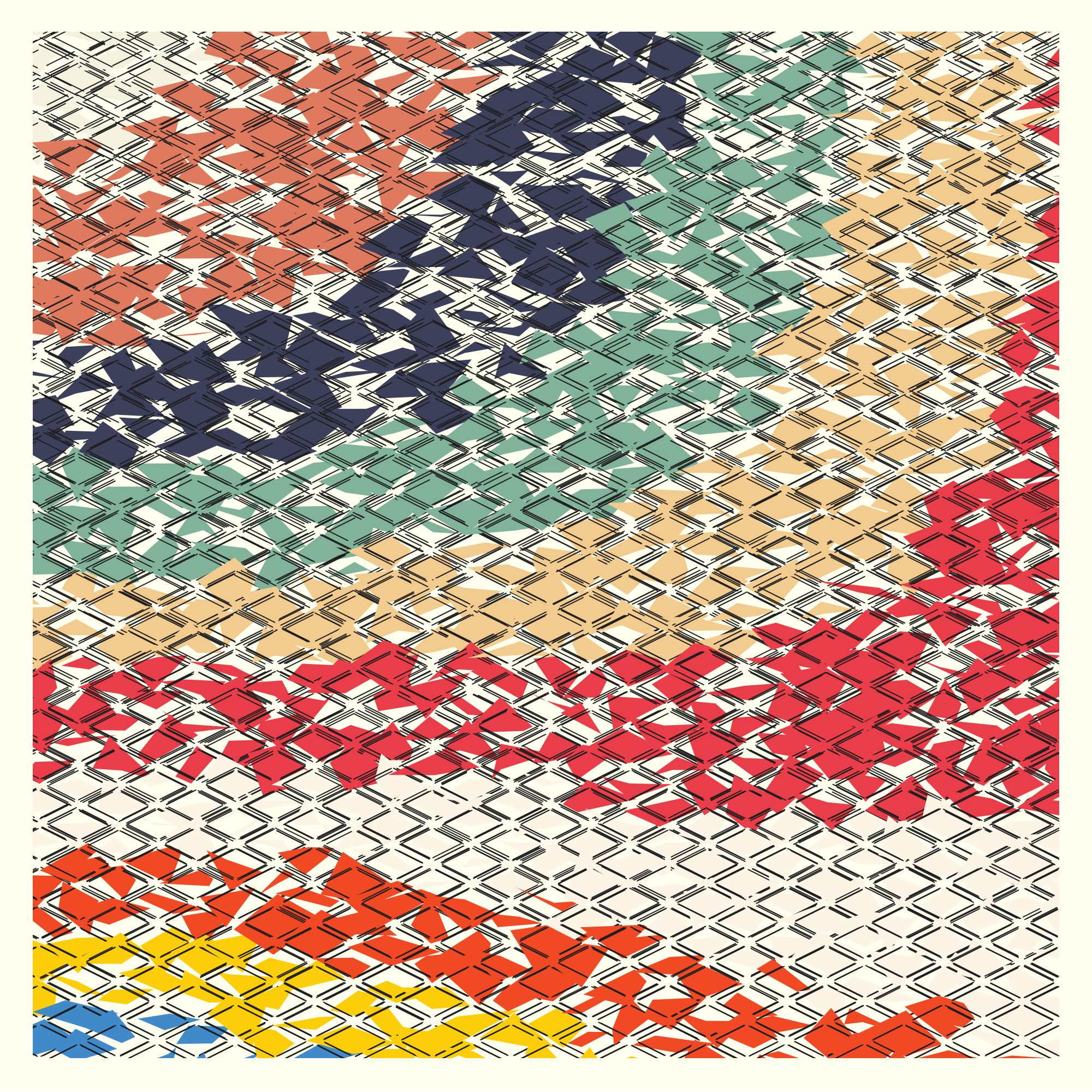 Each tile is made up of two deformed rectangles. One is drawn with a drifting, fragmented outline.