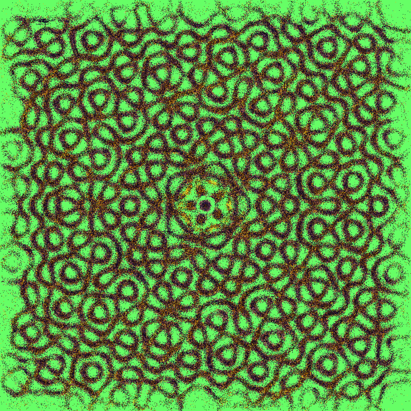 The algorithm behind Imaginary Resonances is simple variation on Chladni figures: figures that arise when sand is dropped on a vibrating surface.