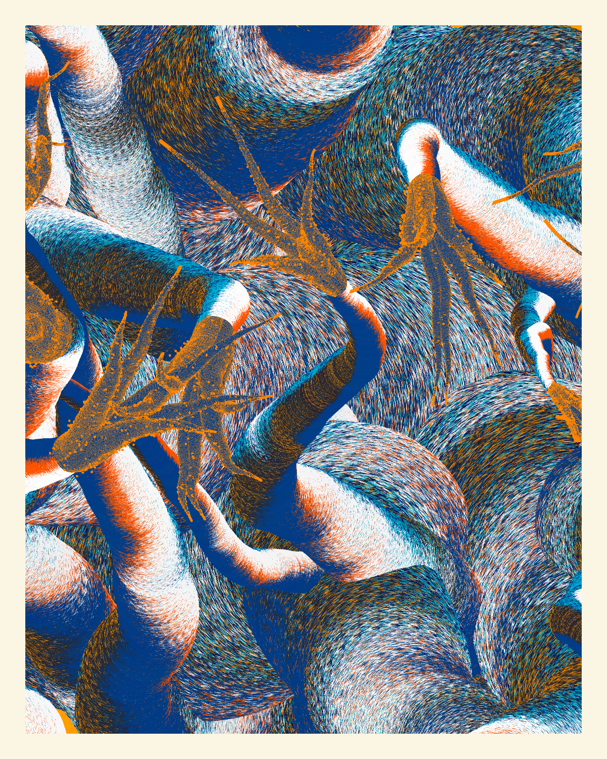 Half flora, half fauna: this piece is an exploration of anemones, specifically in the Aliciidae family, known for long trunks and a head of tentacles. This algorithm creates a new mutation within the Aliciidae family.