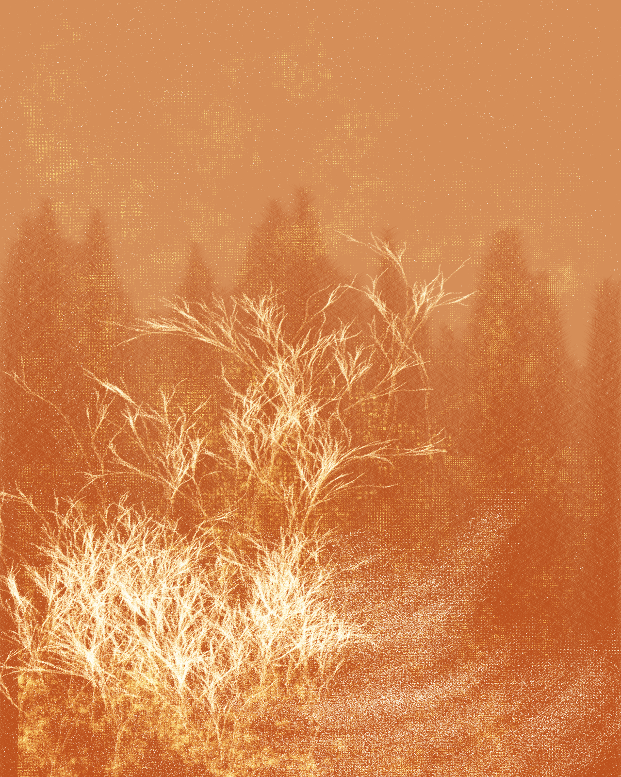 The front Rosemary is my plant The back forest is the scene from my hometown.