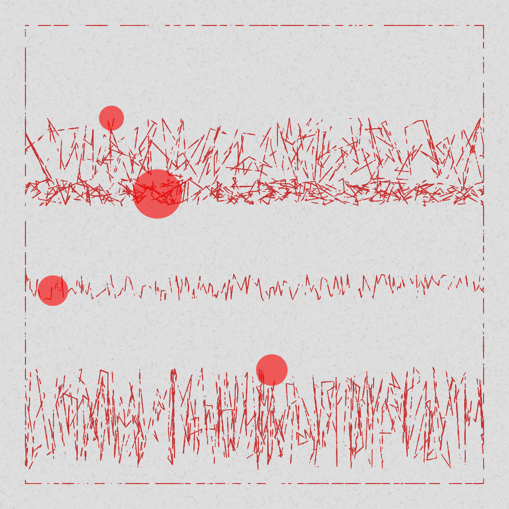 - up to 5 rows of 'scratches' at varying canvas heights & thickness