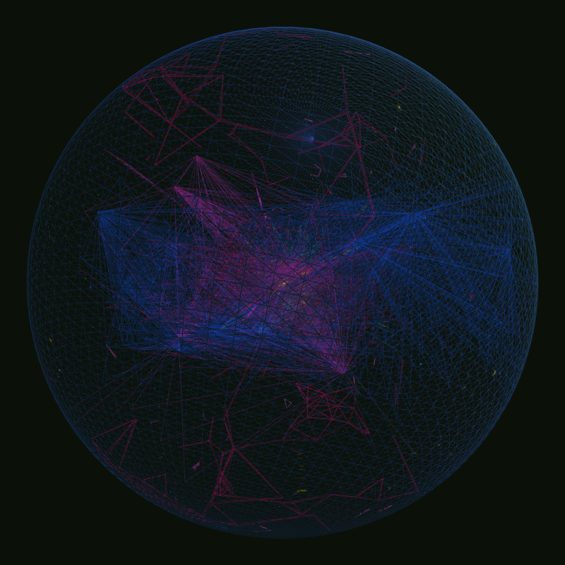 As particles approach one another, interconnections form leading to larger constellation systems.