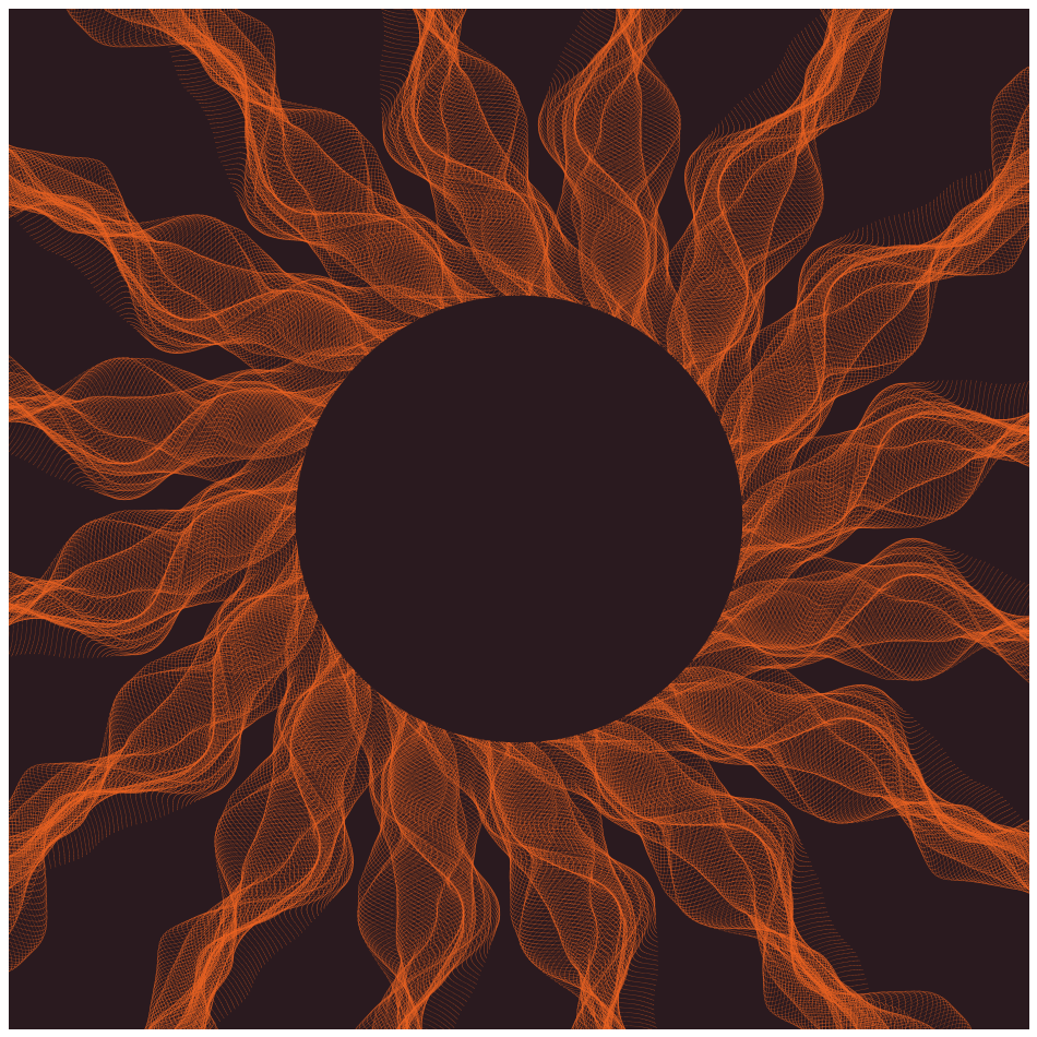 This is sort of a combo of two of my previous pieces that I have released on fxhash. There are 11 different potential color palettes that are randomly chosen to make up each generative art piece. Note that it may take a little bit for the image to render. This project is best enjoyed in full screen mode. Hope you enjoy!