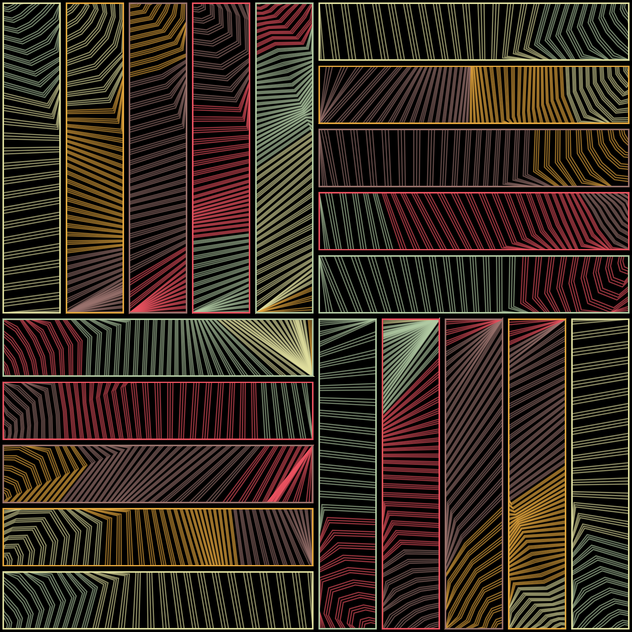 A grid emerged, using the same polar coordinates at different points of the canvas, progressively filling it, in a satisfying but sometimes OCD triggering manner.