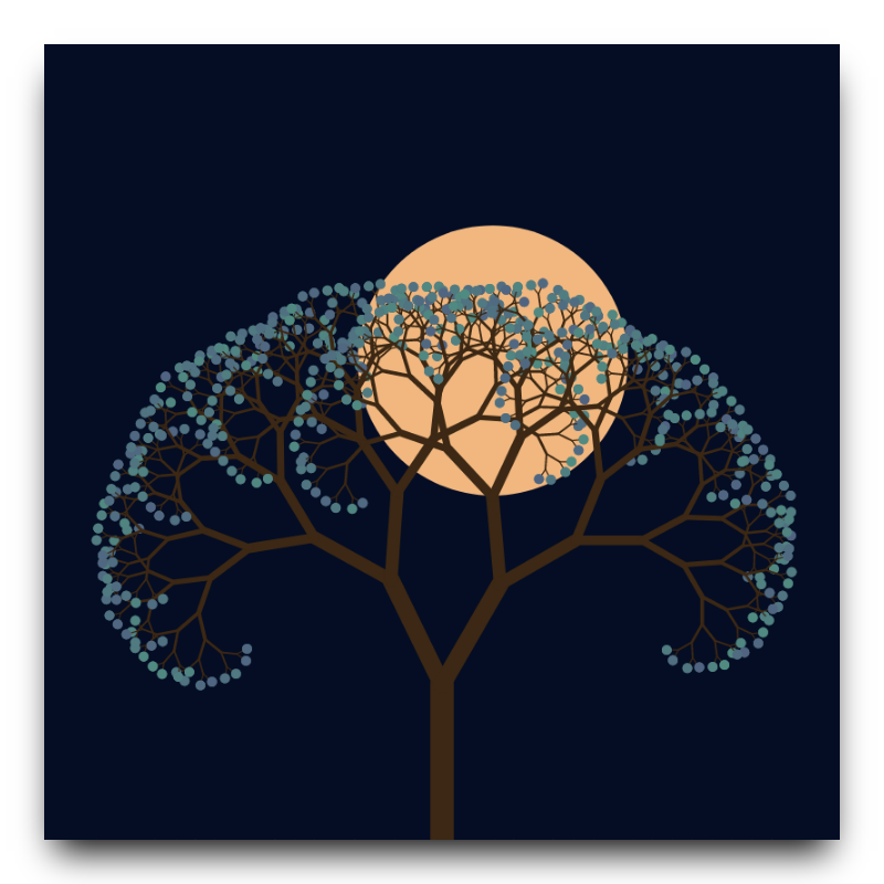Midnight Solitude is intended to be a tranquil piece focused on the relationship between Earth and the vast expanse of The Universe. The emphasis on a single tree signifies the importance of grounding and being connected to the physical world while the sky, stars, and the moon represent the unknown and limitless possibilities of tomorrow's world.