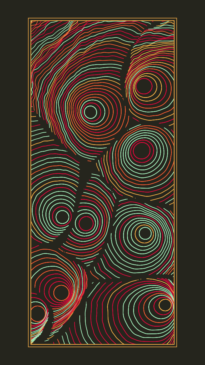 This is an exploration to create an abstract artwork using fields and growth rings and their interaction with each other. Each of the mints can have several central rings up to 14 and the rings interact with each other to form a larger structure. The structure of the rings can be uniform or rotating, with mixed colors or mono colors. Various color palettes and canvas sizes have been used.