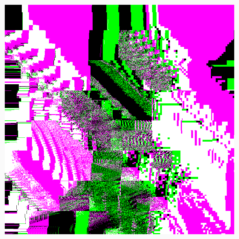 Displacements are affected by hash. Other features include pixelation size, direction, separation and the amount of noisy area.