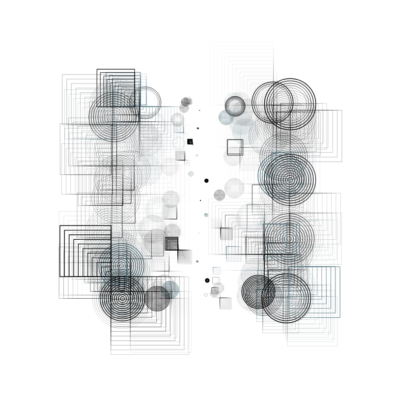 Maybe it's inspired by the marks left by coffee cups in my notebook. Maybe the doodles in that same notebook, often squares and circles, somehow influenced this work. Maybe the Bridget Riley book sitting on the shelf above gently whispered to me when I wasn't looking. Or maybe I just played with an idea and found it pleasing. The only thing I'm certain of – it was definitely a Tuesday.