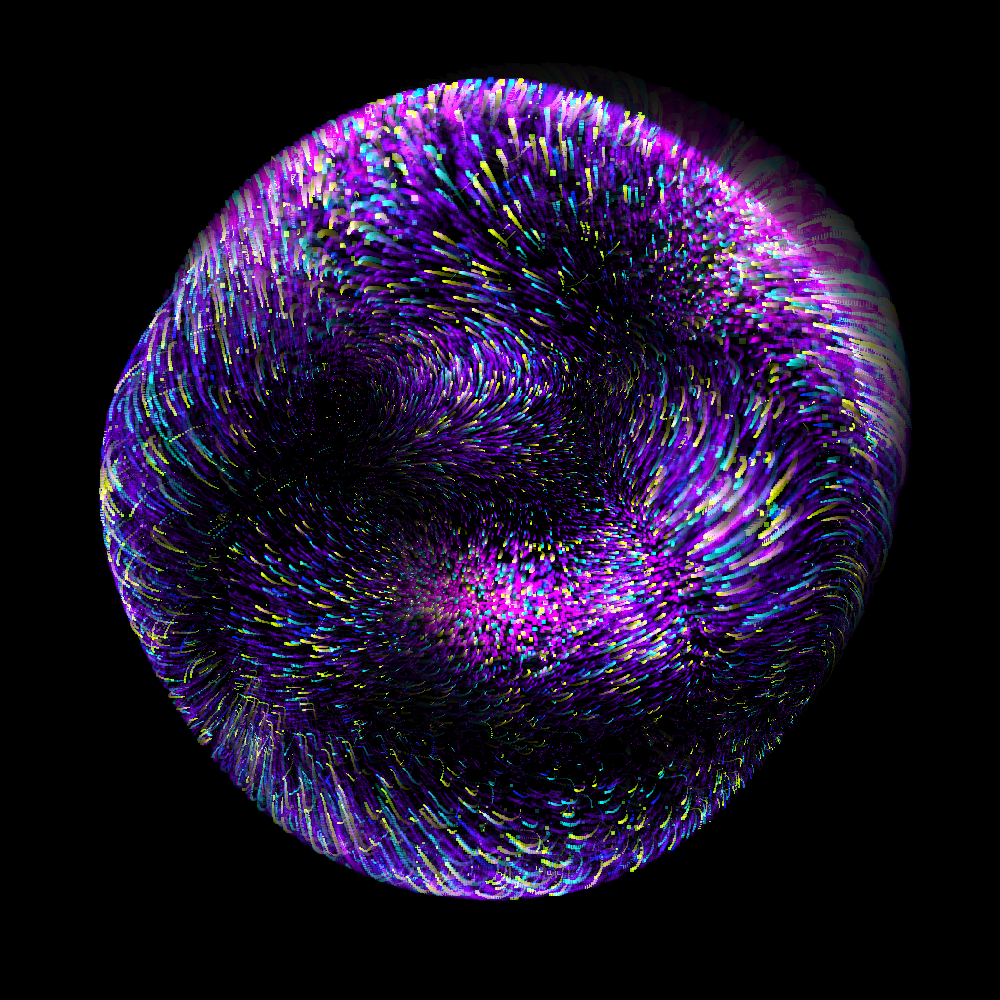 Animated with GPGPU particles in WebGL and feedback post-processing.