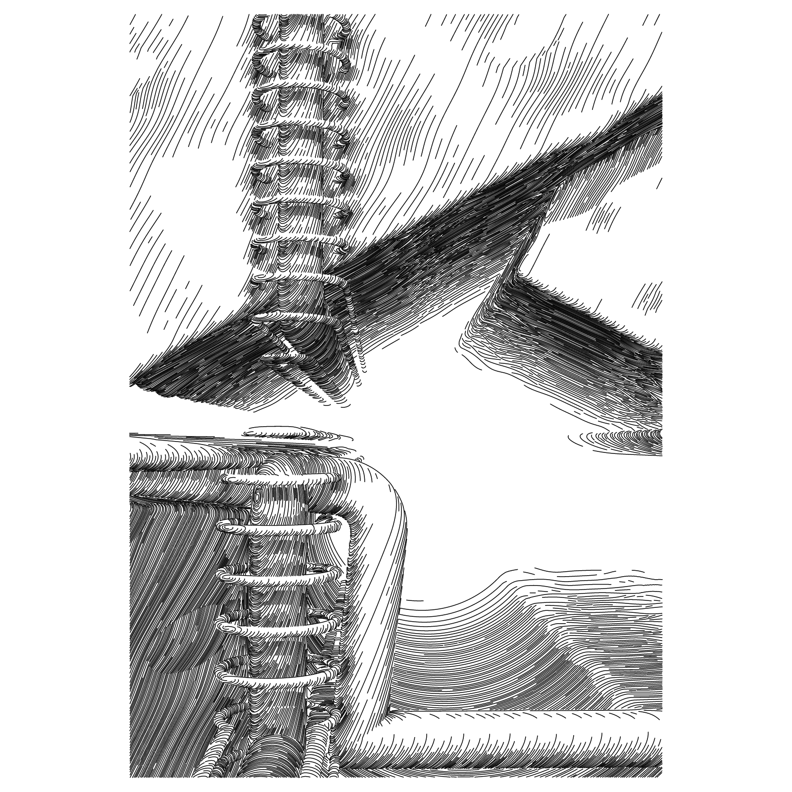 Industrial Devolution is the first long-form generative project using my rayhatching algorithm. It combines a raymarcher for SDFs with a surface orientation based flow field renderer in order to draw arbitrary 3D scenes as line art, with an organic, hatched drawing style. The SDF formulas were generatively designed and parametrized to form ancient landscapes of corroded industrial pipes and immense, ageless blocks of concrete.