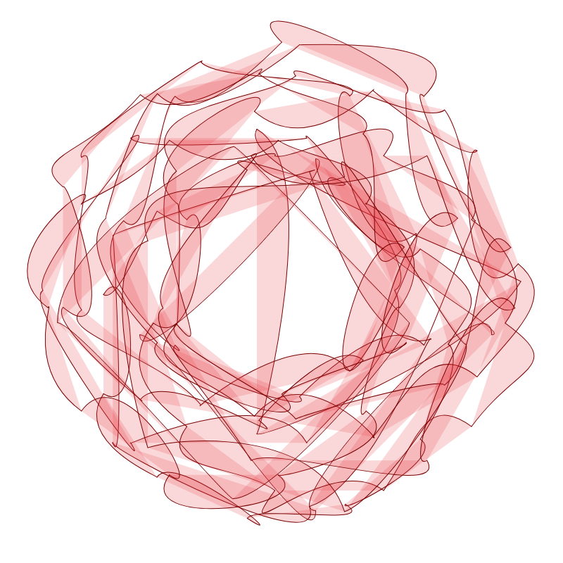 Exploring the generation of abstract roses using bezier curves; certain colours are rarer than others