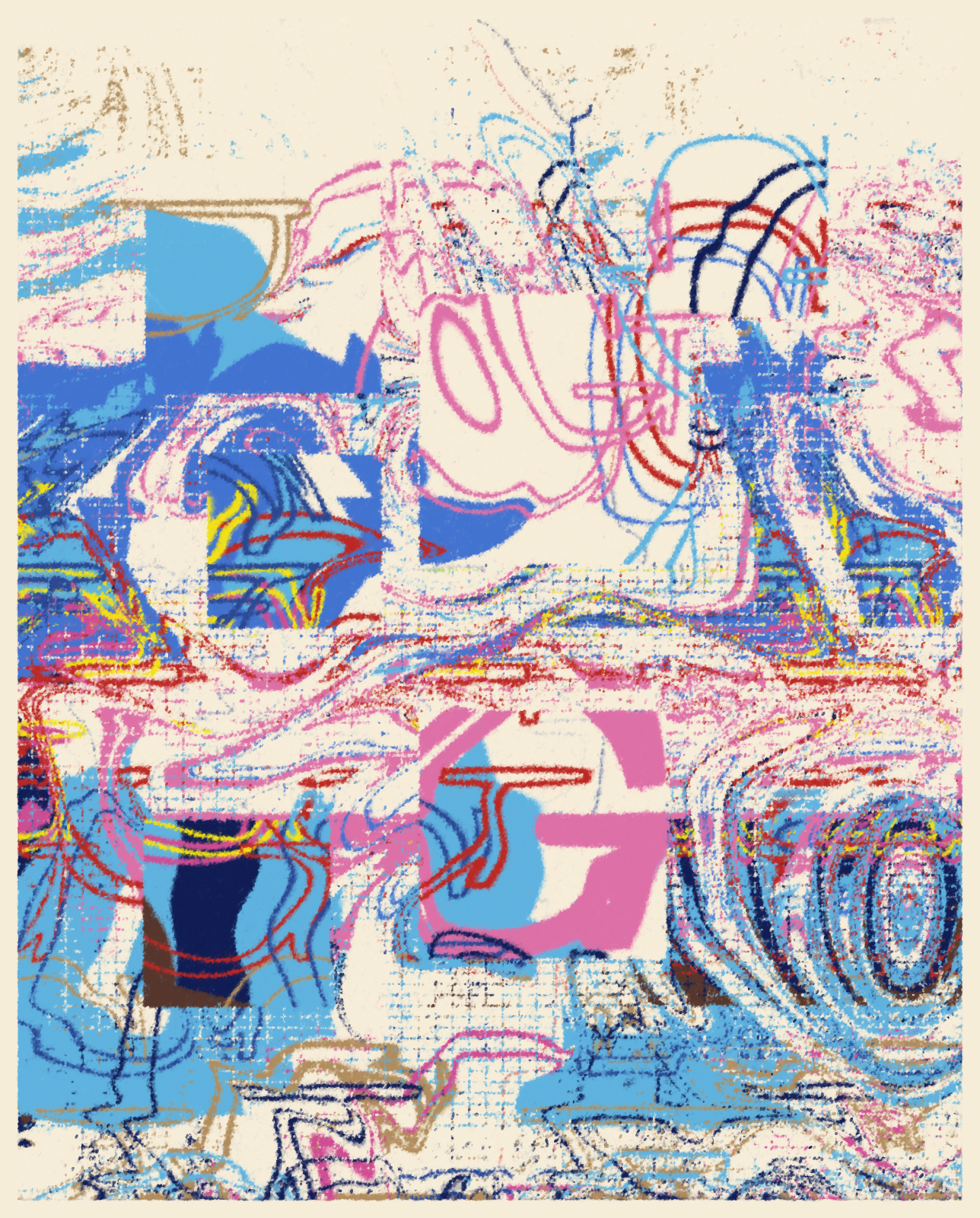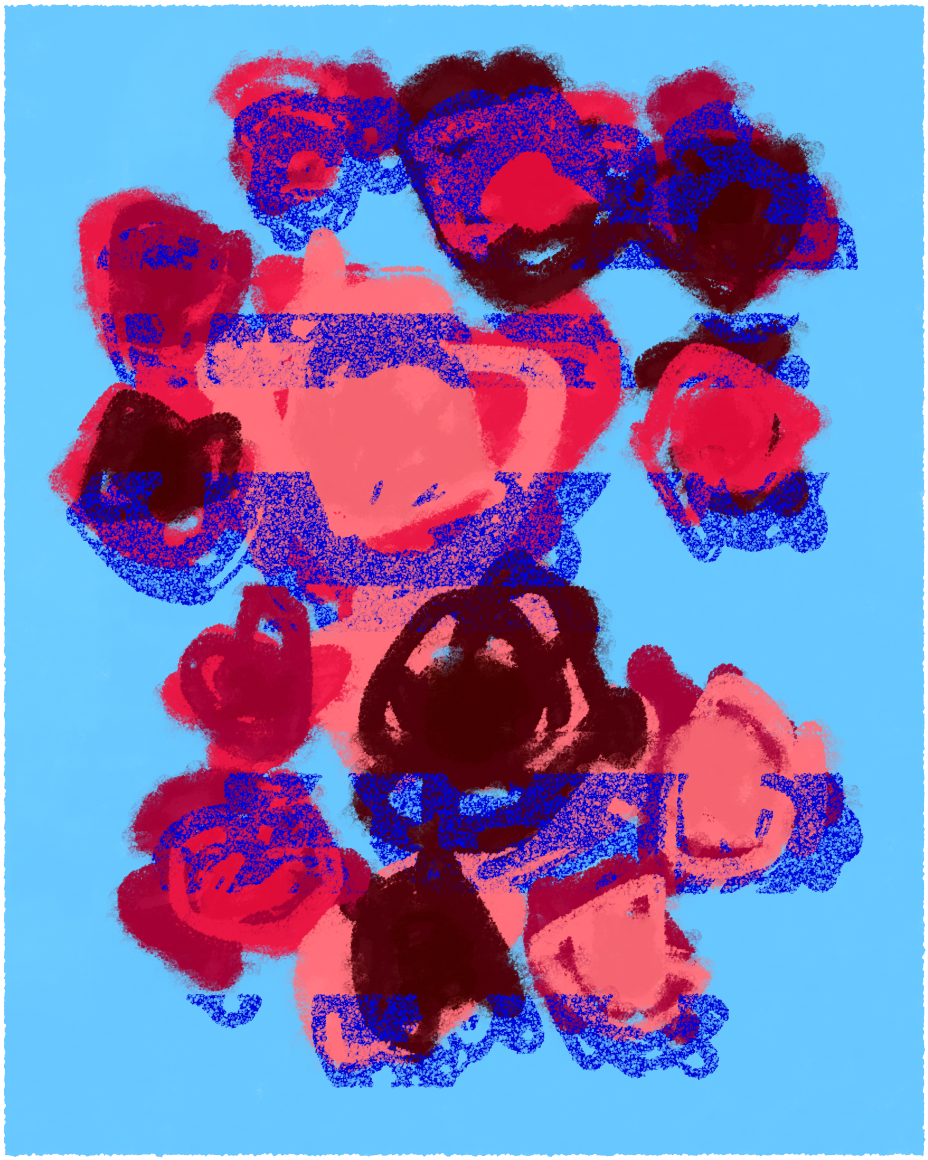 My goal with this project was to build as much texture and layering as possible by warping and collaging the letters together in various ways. The font I’m using is a design I made years ago to supplement my wood type collection for printing. I really enjoyed being able to bring that part of my past work into my generative art practice.