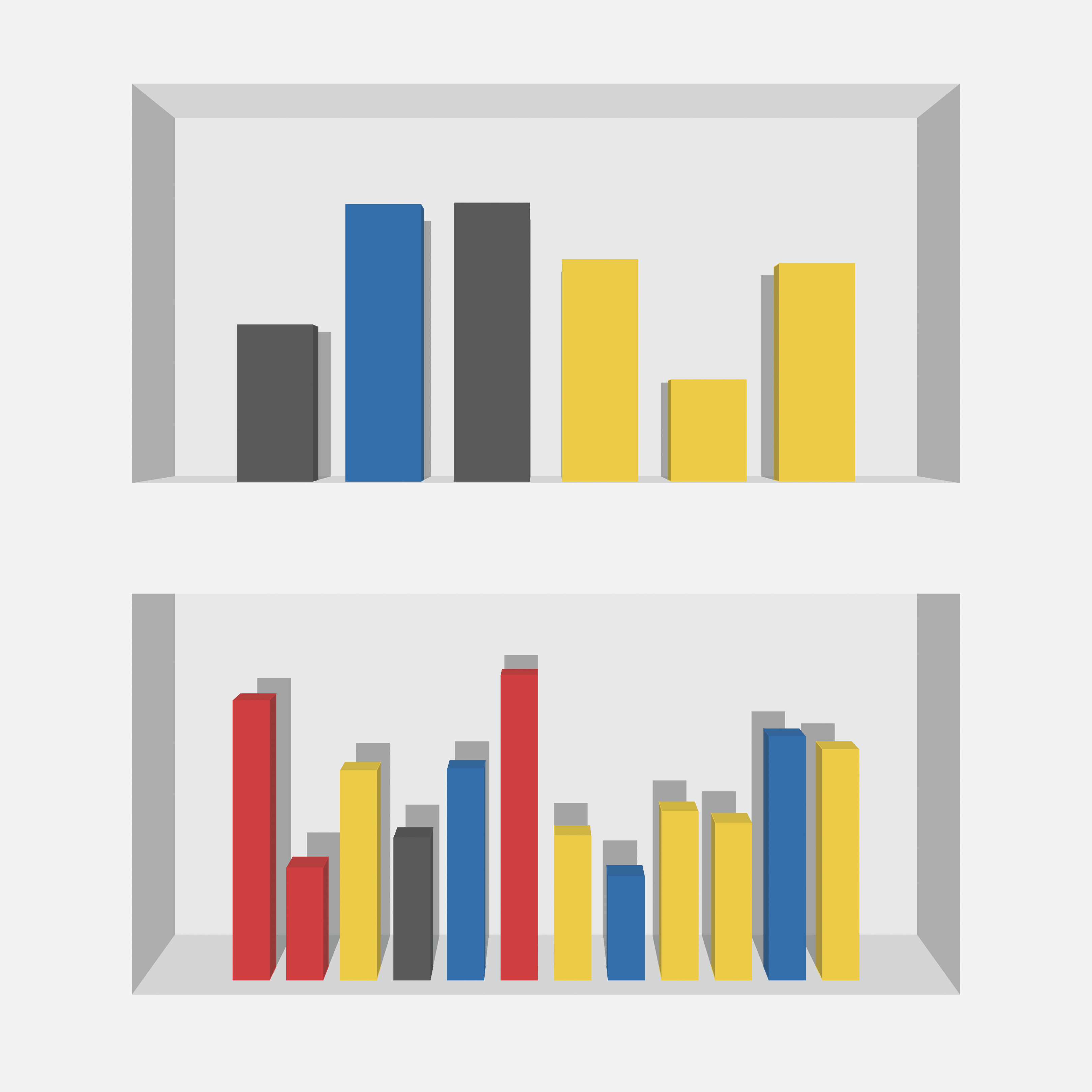 Variations: Color palettes; Angle of view; Chart trend; Box shape; Shadow; Line chart; (rare) Guide line; (rare)