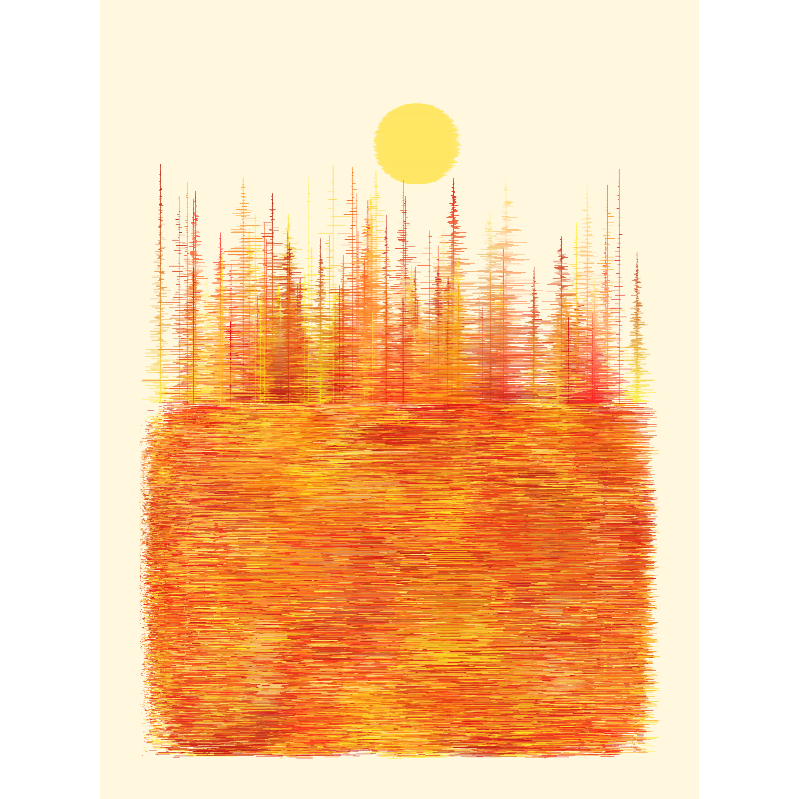 Gradient Lake generates an image with thin lines of color gradients. The thin lines are grouped to form multicolor trees as well as a lake that lay before them. Depending on the number of trees generated and their size, the forest near the lake may look sparse and desolate or dense and deep. In either case, the sun behind the trees shines its light onto the lake illuminating the colors within it as well as the reflected colors of the trees. With several colorways and randomization of each feature, there are many possibilities that will allow for each image to be unique.