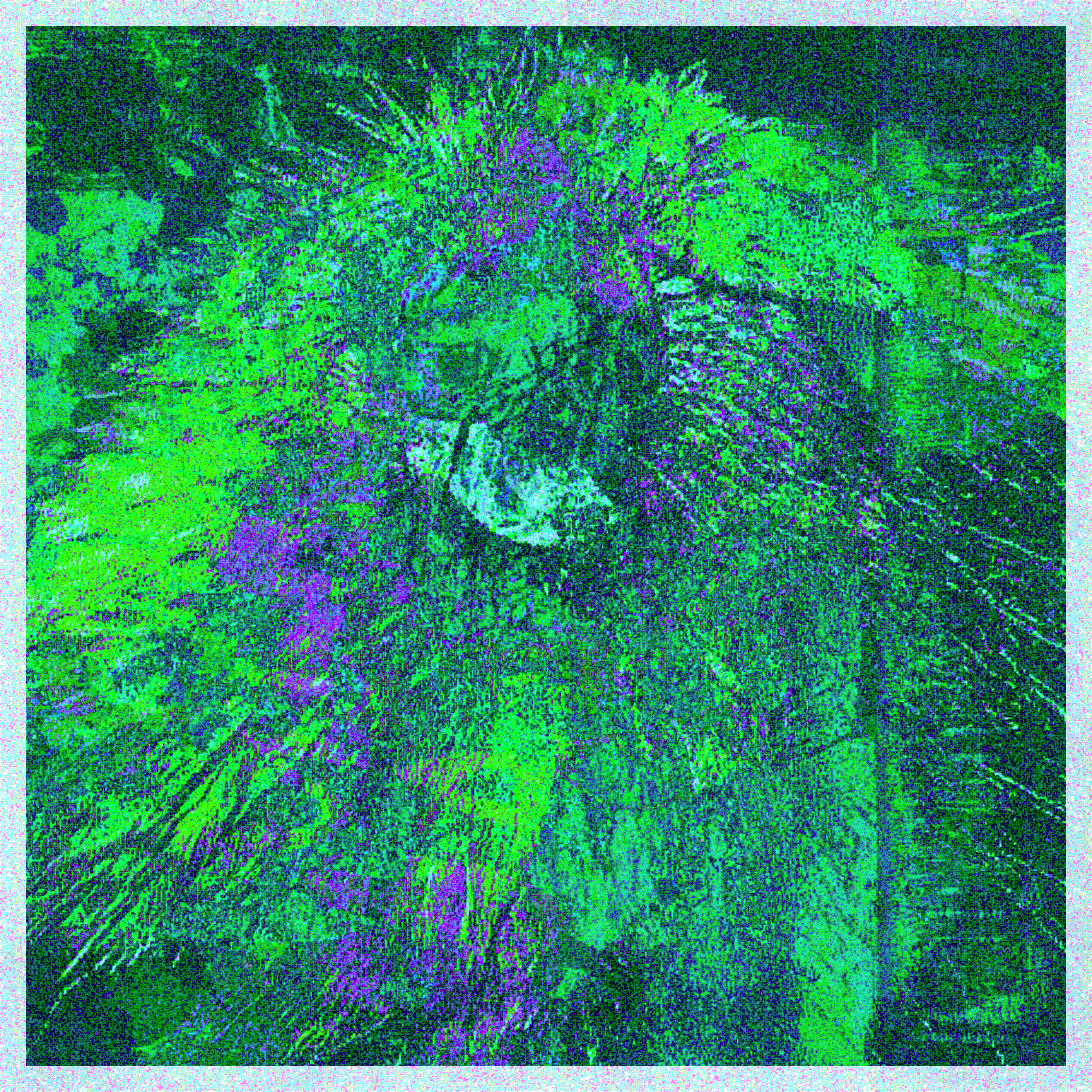 The result is a combination of 3 different types of source images, all generated via GANs. The first layer, "Bio", is a textural layer, that was generated using nature imagery. The second layer, "Glyptik" adds more of a pattern or structure to the composition and was created from a combination of album covers, paintings and illustrations. The third layer "Ortho" is a GAN created imagery of a bird. On top of all of this, is a noise layer "Electromagnetism" which glues everything together.