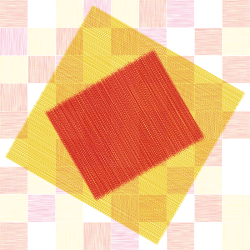 Combination of two rectangles on a checkerboard background, playing delicately with line textures and transparencies.