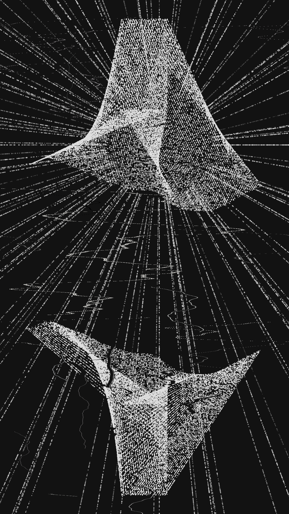 Klyft makes use of the unique temporal aspect of computational art by developing its expression gradually over the next 132 years. As we come closer to 2154, the space between the two shapes in Klyft will grow smaller to symbolize the closing of the gender gap. As time goes on, however, Klyft also becomes more and more glitched out to represent the projected increases in greenhouse gases and climate catastrophes.