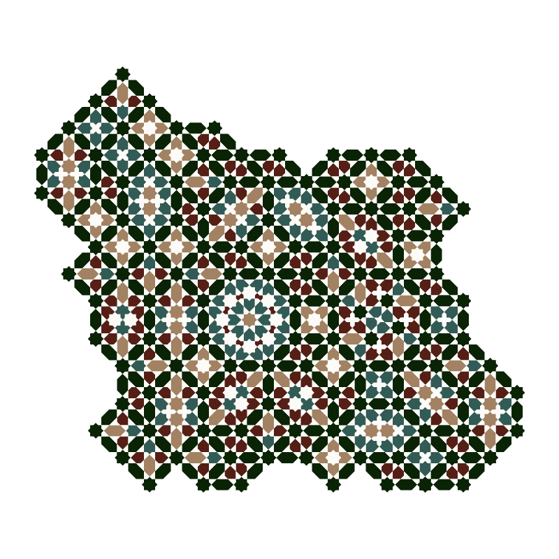 Randomly generated designs inspired by Islamic art, specifically the decorative tilework known as Zellij, found on walls, floors, and fountains in Fez, Morocco.