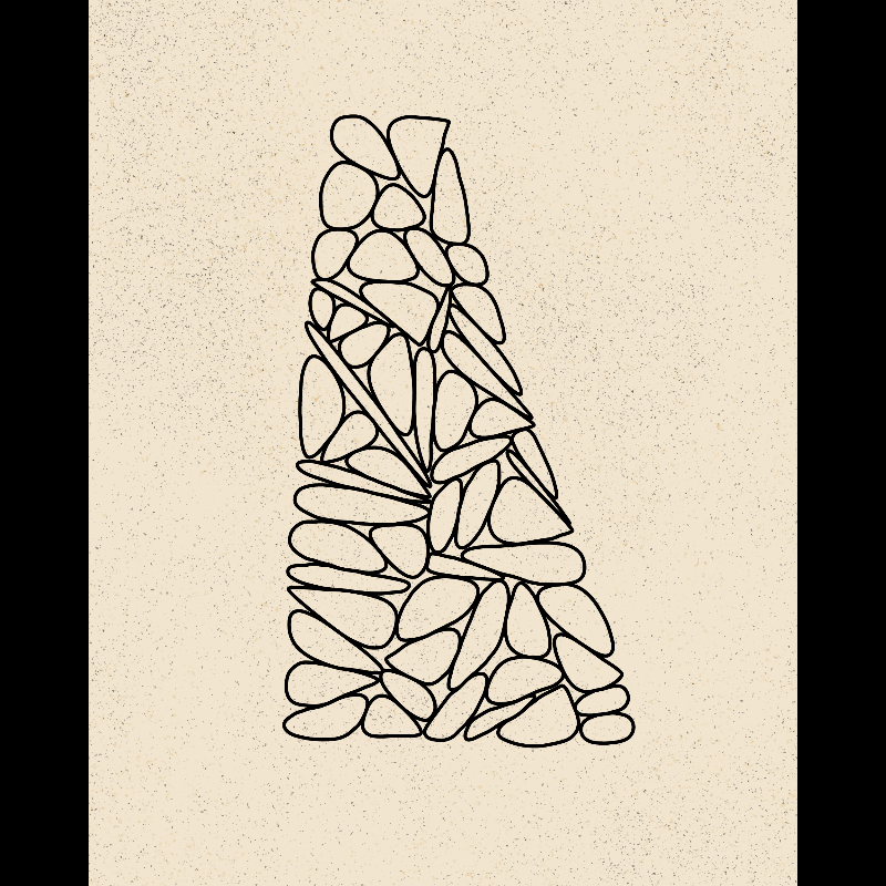 A cairn is a monument made of stacked rocks. In modern times, often used for wayfinding in remote areas, as in mountaineering, or to indicate an area of significance.